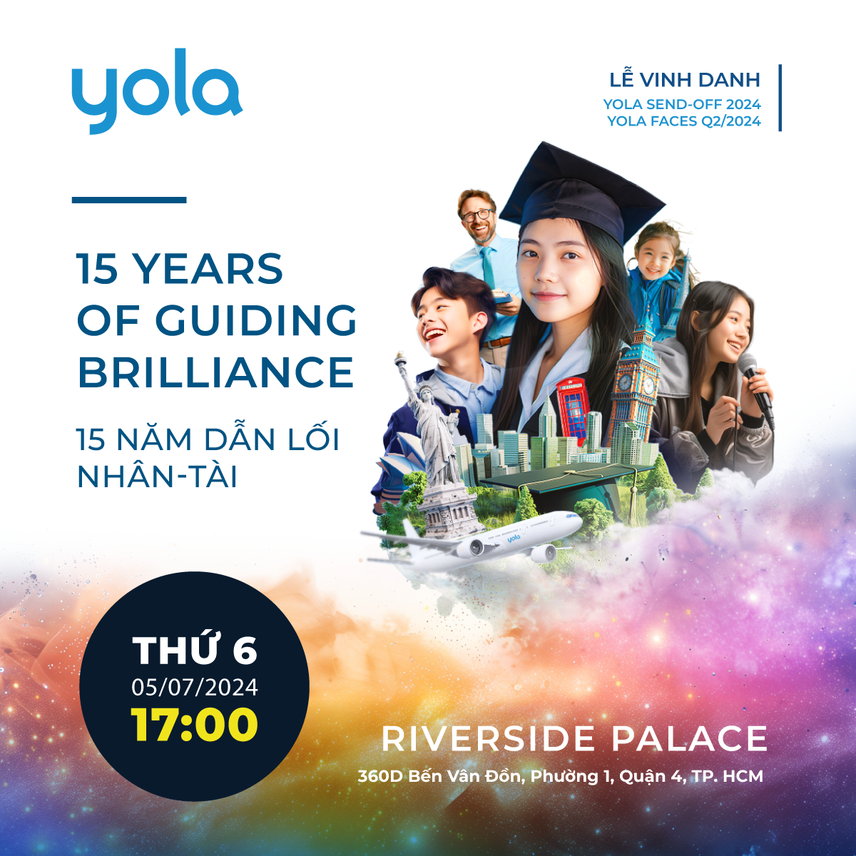Đánh dấu cột mốc đặc biệt 15 năm trên hành trình Giáo Dục Khai Phóng, lần đầu tiên các thế hệ học viên YOLA sẽ cùng hiện diện tại LỄ VINH DANH HỌC VIÊN: YOLA Send-off 2024 và YOLA Faces Q2/2024.
